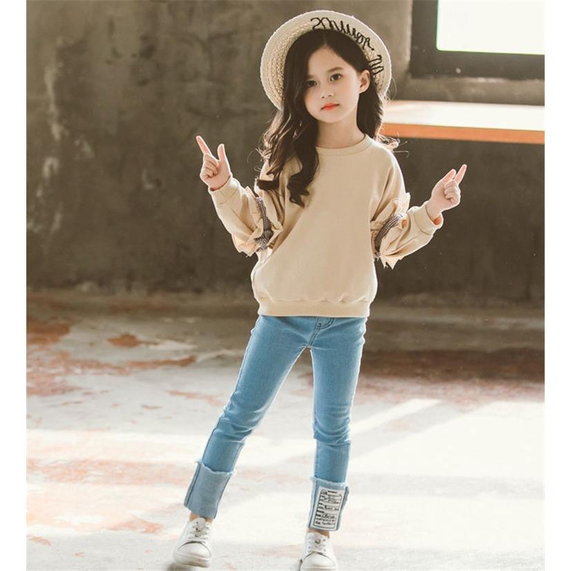 子供服 セットアップ 女の子 長袖 春秋 秋着 上下セット 韓国子供服 キッズ ジュニア Tシャツ デニムパンツ 長ズボン 可愛い おしゃれ 小学生 通学着 新品 Y アユストア 通販 Yahoo ショッピング